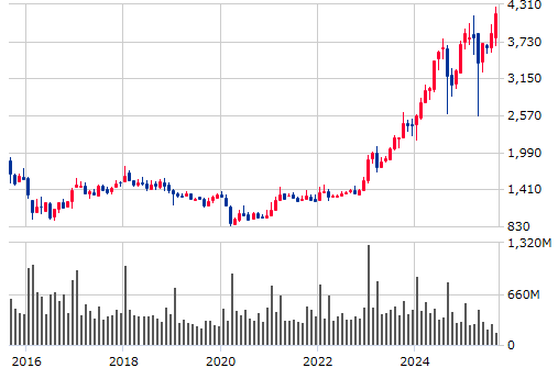 三井住友フィナンシャルグループは、国内外での強固な顧客基盤、多様な事業ポートフォリオ、デジタル戦略による新たな挑戦を兼ね備えたメガバンクです。配当利回りは3%超と安定感があり、長期保有でじっくり資産を増やしたい投資家に適した銘柄と言えますね。