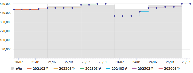 直近の業績推移では、2025年3月期は売上高約6.54兆円、純利益約5,261億円であり、アナリスト予想では2026年3月期に売上6.88兆円、純利益5,579億円と穏やかな成長が見込まれています。ただし、会社側の見通しでは、営業利益1兆円・純利益5,400億円程度と控えめな予想を示しており、投資を優先するスタンスが見えます。