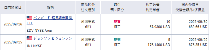 今月の現在までで売却した銘柄はJNJで5株売却によって保有額は0株となりました。代わりにEDV購入してJNJ分の分配金を補填。