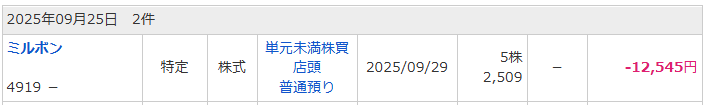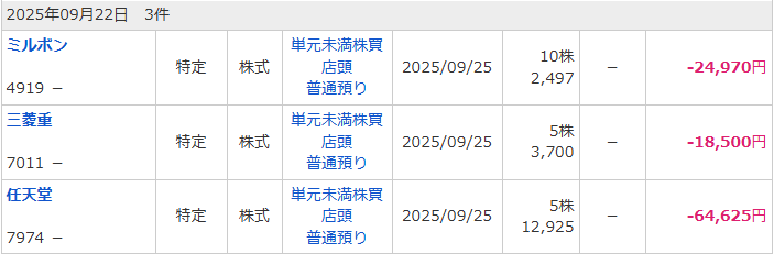 25年9月4週の売買