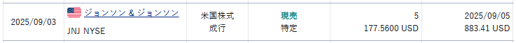 今月の現在までで売却した銘柄はJNJだけになります。残り10株の内5株を売却しています。基本的に米国株を購入売却する際は成行なので狙った金額よりもおおよその金額があっていれば売買する感じですね。