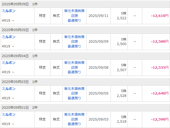 優待目的でミルボンを少しずつ購入しています。まだ40株程度なのでまだまだ積立していく予定。