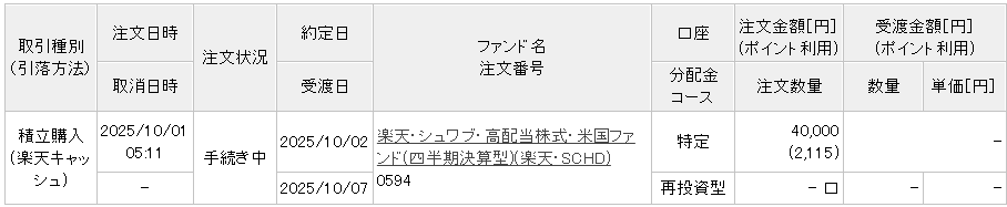 金・プラチナのドル・コスト平均法による毎日購入に加えて以下楽天SCHDを積立購入してます。今月は4万円積立してますが来月からは2万円に引き下げる予定。