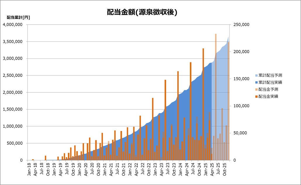 2025年4月の配当金受領額は源泉徴収後で以下のとおりです。
