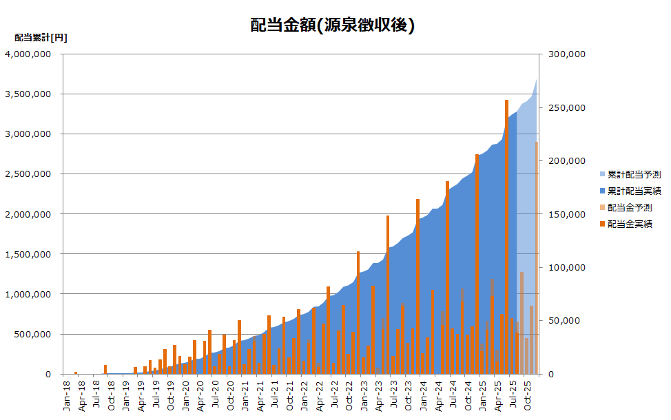 次に配当金受領額と累計配当金額をグラフ化したものです。