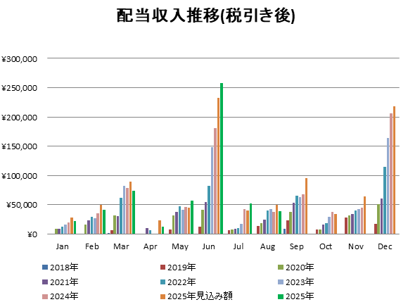 2025年8月の配当金受領額は源泉徴収後で以下のとおりです。