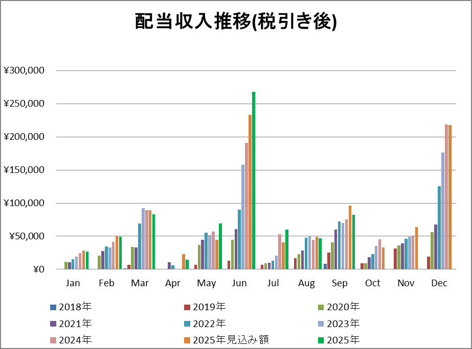 2025年9月の配当金受領額は源泉徴収後で以下のとおりです。