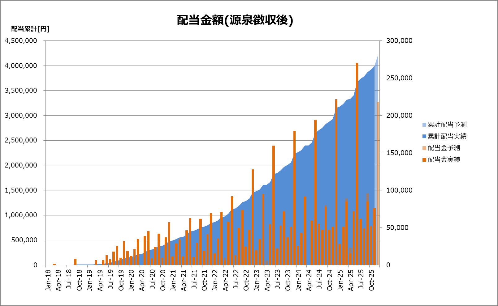 次に配当金受領額と累計配当金額をグラフ化したものです。