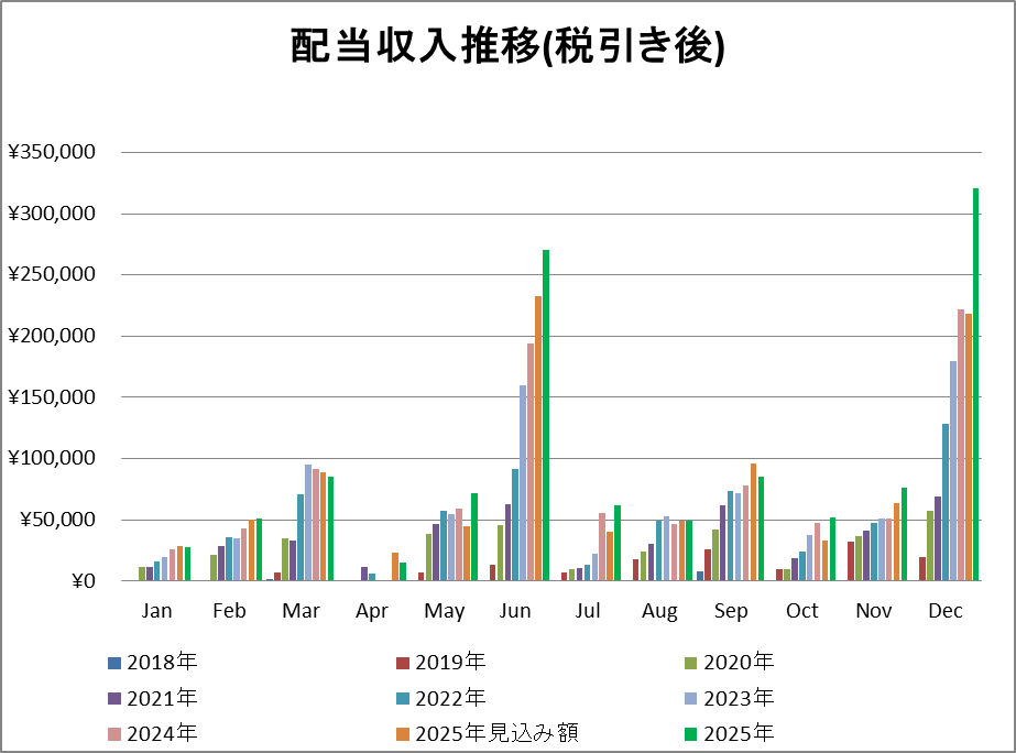 2025年12月の配当金受領額は源泉徴収後で以下のとおりです。