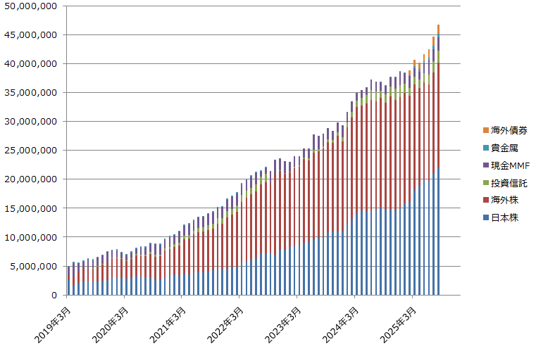 最初期500万円くらいからスタートし、6年半ごろかけて現在4,500万円とおよそ9倍まで膨れ上がりましたね。