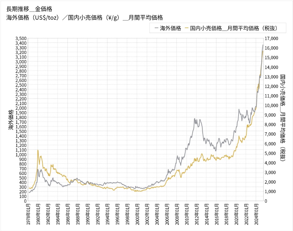 三菱マテリアルゴールドパークHPのマーケット情報から金価格推移を抜粋