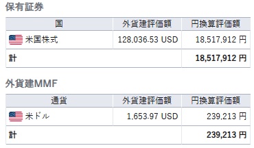 ということで現在の保有米国株&外貨建てMMF合計になります。